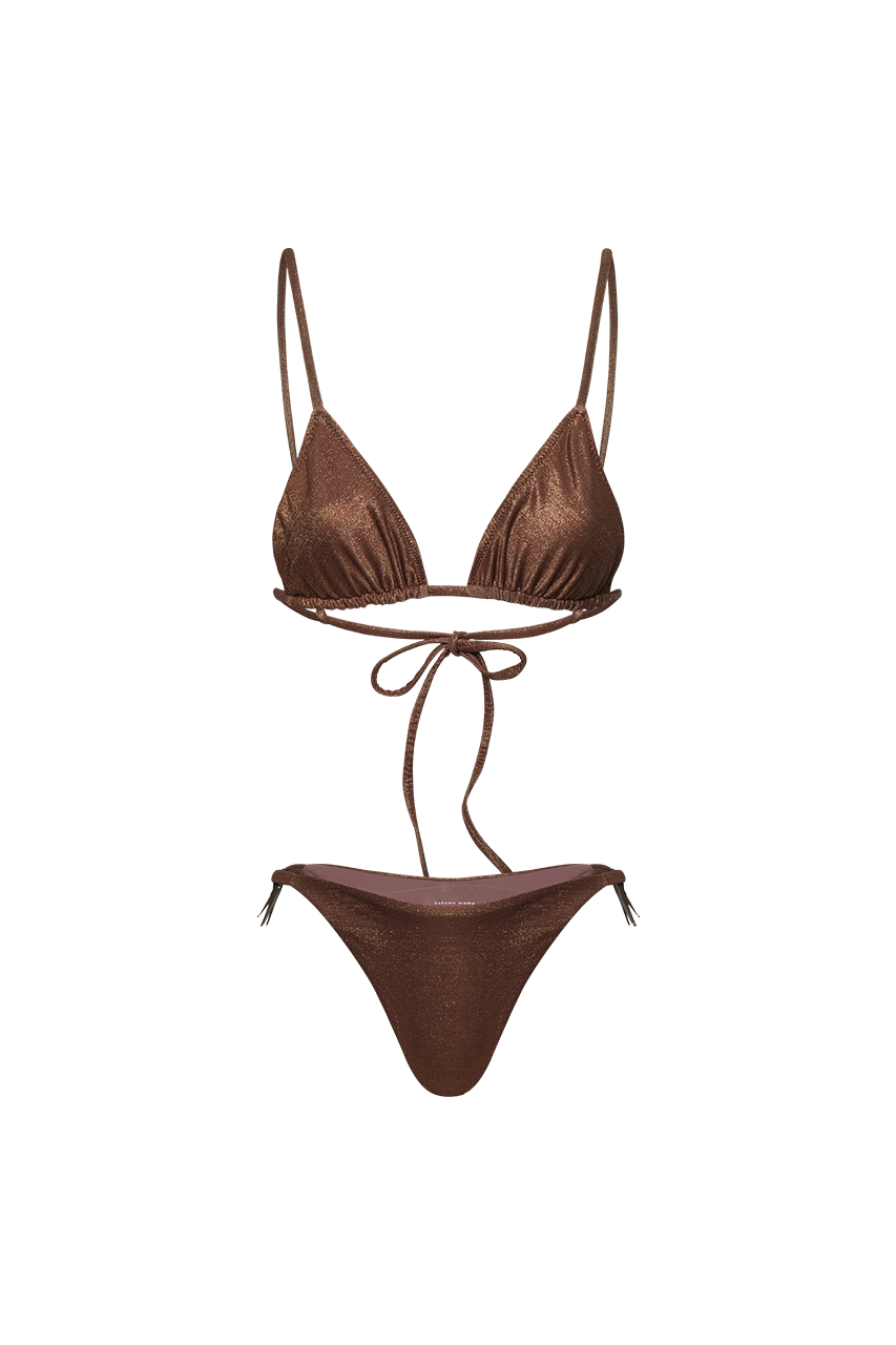 Corte triangular básico y copas ajustables para la cobertura deseada y tirante para llevar por encima del hombro.