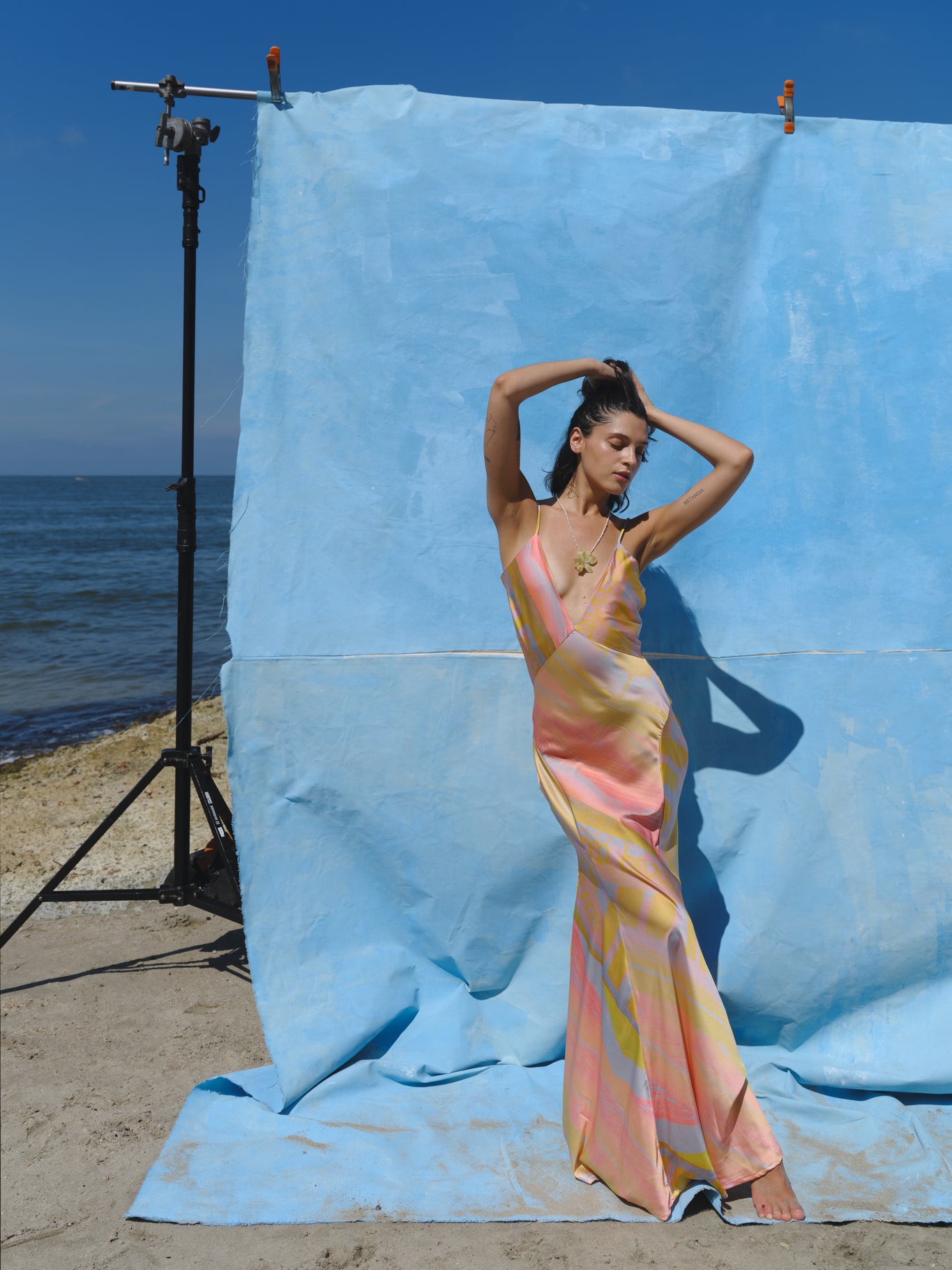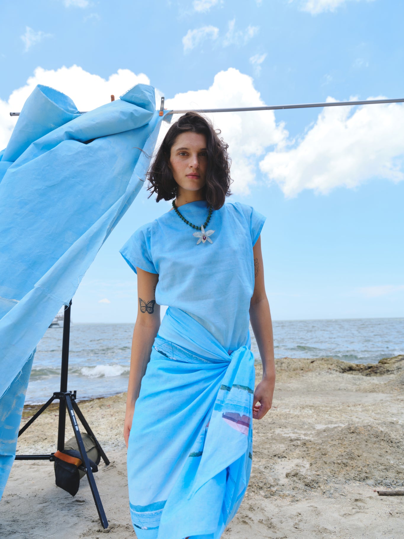 Fabrics like silk, linen, chiffon, and handcrafted crochet intertwine in pieces that flow with the same energy as the sea that inspired them.