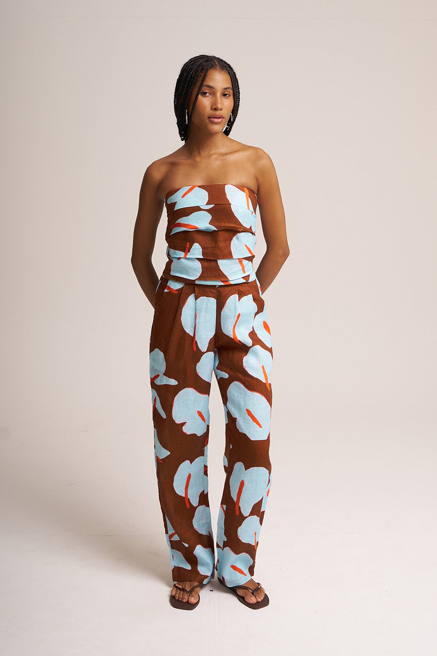 Discover signature linen tailoring in the Ocean Pants. These high-waisted trousers are designed with a wide leg shape, a back waistband for enhanced support, hip pockets and front pleats. Together, these elements create an effortlessly relaxed and stylish silhouette.